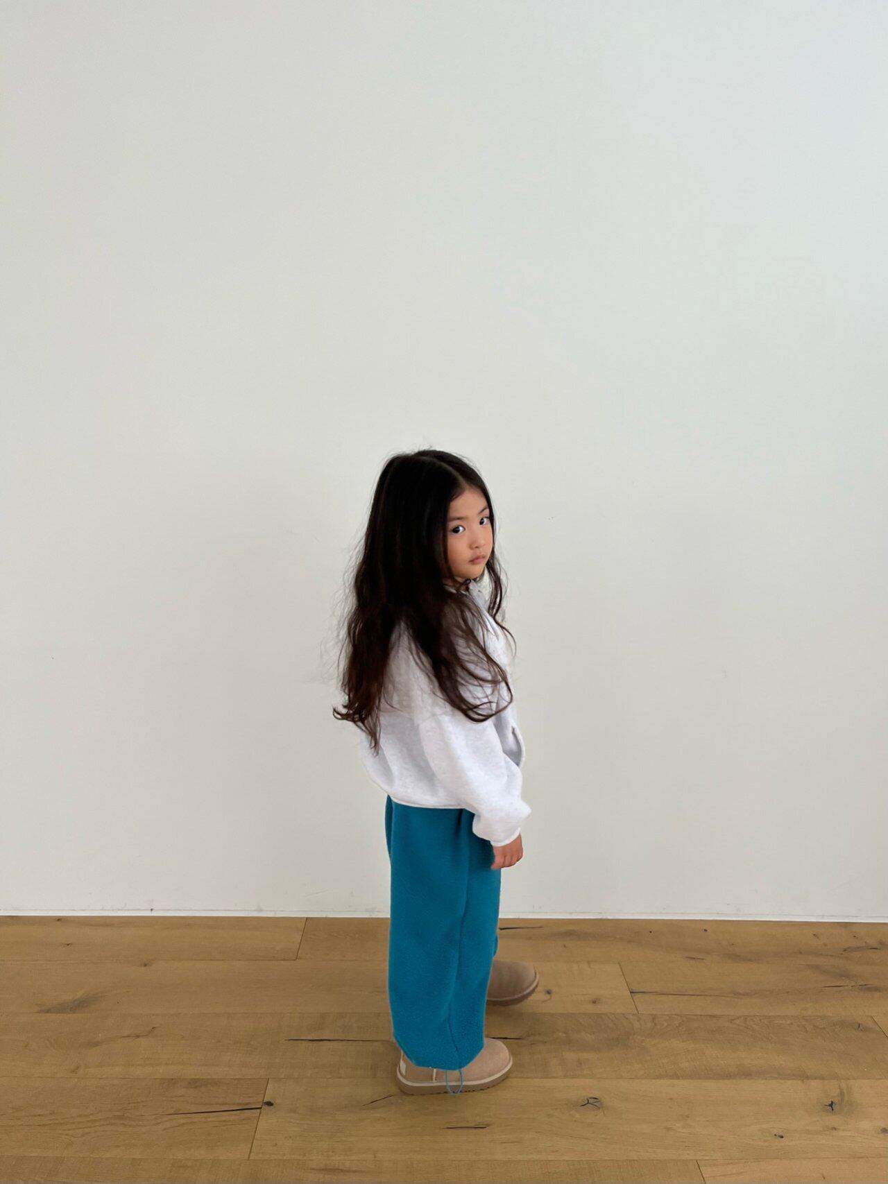 キッズ女の子:107cm / 18.5kg / トップスM・ボトムLサイズ着用