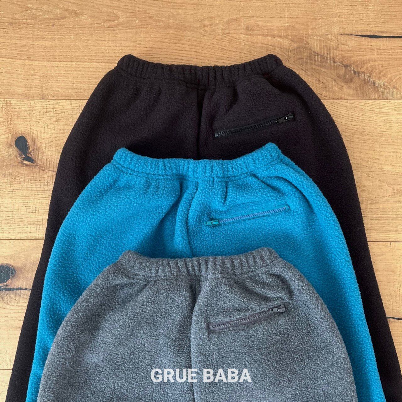 もこもことした質感が魅力の両面シェルパフリース素材を使用した、GRUE BABAのアリパンツ。